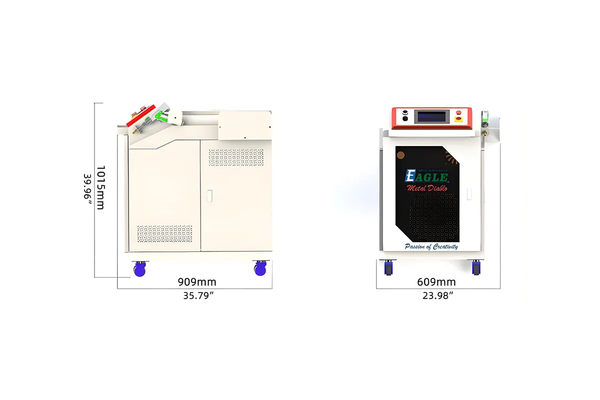 Compared to traditional welding machines, the EF-Hybrid laser welding machine features an integrated design with a built-in water chiller and laser source, offering powerful functionality in a compact space. It comes equipped with a highly efficient welding gun that is easy to use and allows for interchangeable gun nozzles to suit different tasks. Additionally, the machine is fitted with four caster wheels, making it highly portable for welding in various locations.