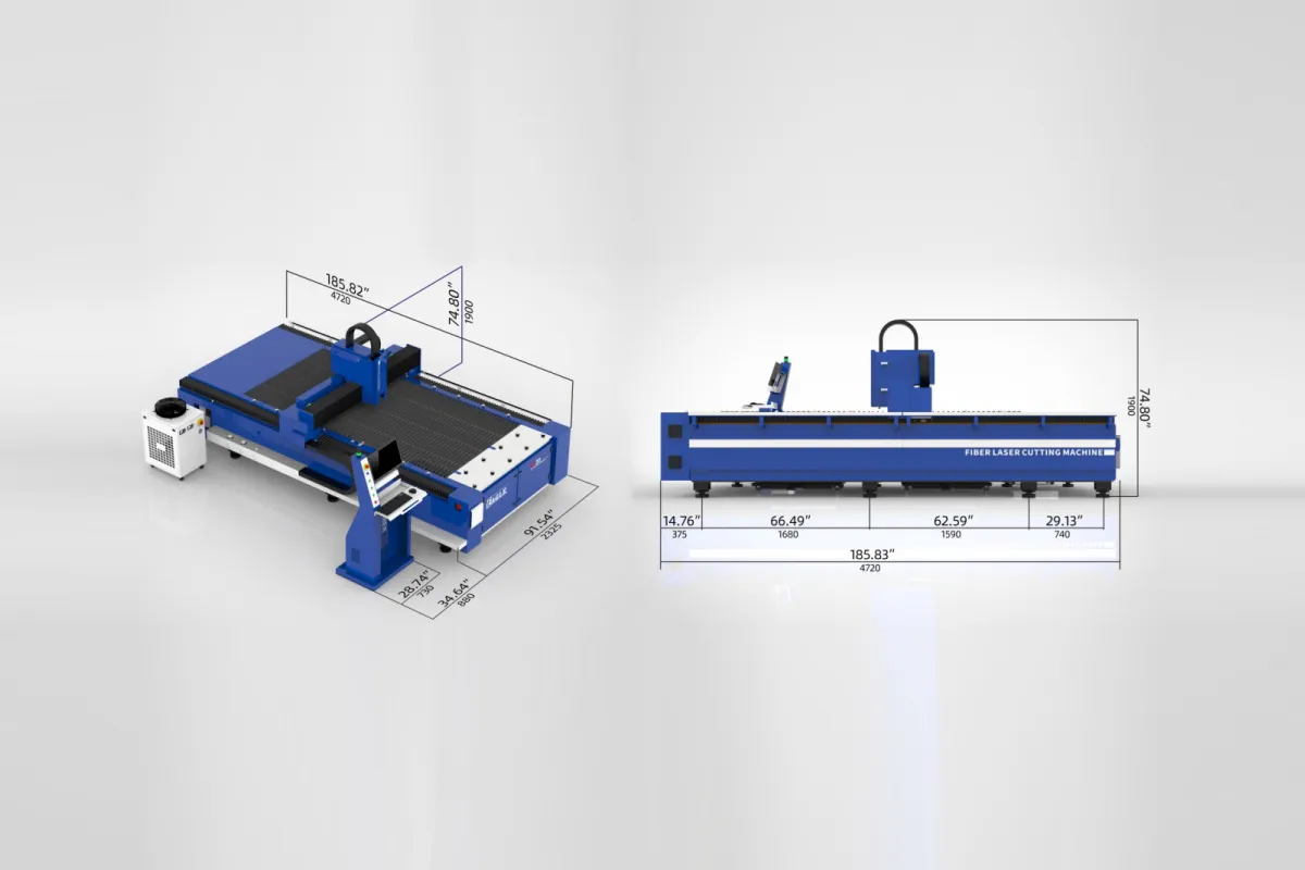 The high-power continuous wave multimode fiber laser source, available in 6000W to 20000W, features a water-cooled and modular design, ensuring reliable and efficient cutting performance.