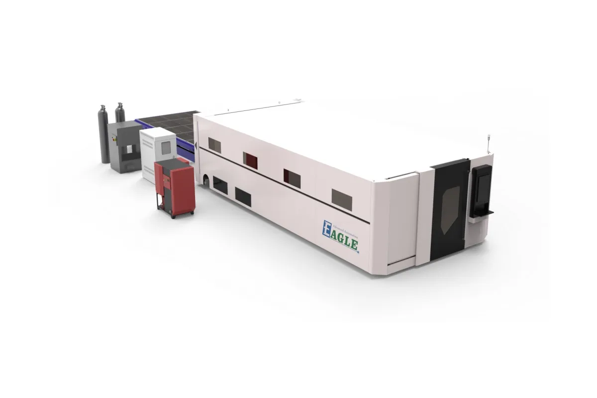 This enclosed flatbed fiber laser cutting machine is specifically designed for high-speed cutting of various sheet metals. It offers a powerful and reliable laser cutting solution for rapid production, featuring a laser head acceleration of over 1.0G, a spacious working area of 2550×6050mm, and accompanying nesting software. The multi-chamber exhaust system not only ensures a clean working environment by removing fumes and airborne particles but also contributes to the machine's overall efficiency and reliability by maintaining optimal operating conditions.