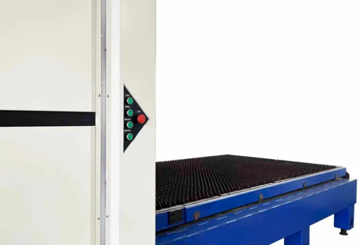 The laser cutting machine is enclosed in a protective housing, providing maximum safety during operation.